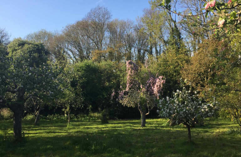 Experience the peace and tranquility of the Quantock Hills in by camping in an old cider orchard all by yourself. The Somerset cider apple orchard (pictured in Spring) sits in just under half an acre and is surrounded by fields and woodland. The orchard has private facilities of which you will have exclusive use during your stay.